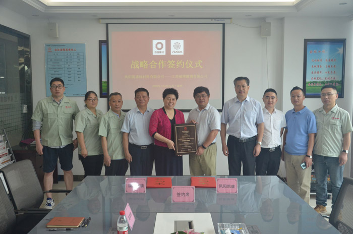 2020年7月6日,江蘇福坤玻璃有限公司(以下簡稱福坤玻璃)與鳳陽凱盛硅材料有限公司(以下簡稱鳳陽凱盛)在江蘇泰興簽署戰略合作協議,福坤玻璃董事長、總經理洪愛萍、公司戰略發展顧問曹先生、公司技術總監、享受國務院特殊津貼專家鄭鴻生、行政副總曾峰、總經理助理高維靜率領福坤骨干成員與鳳陽凱盛董事長李龍、總經理曹艷平、銷售經理郭有利一起見證了簽約過程。