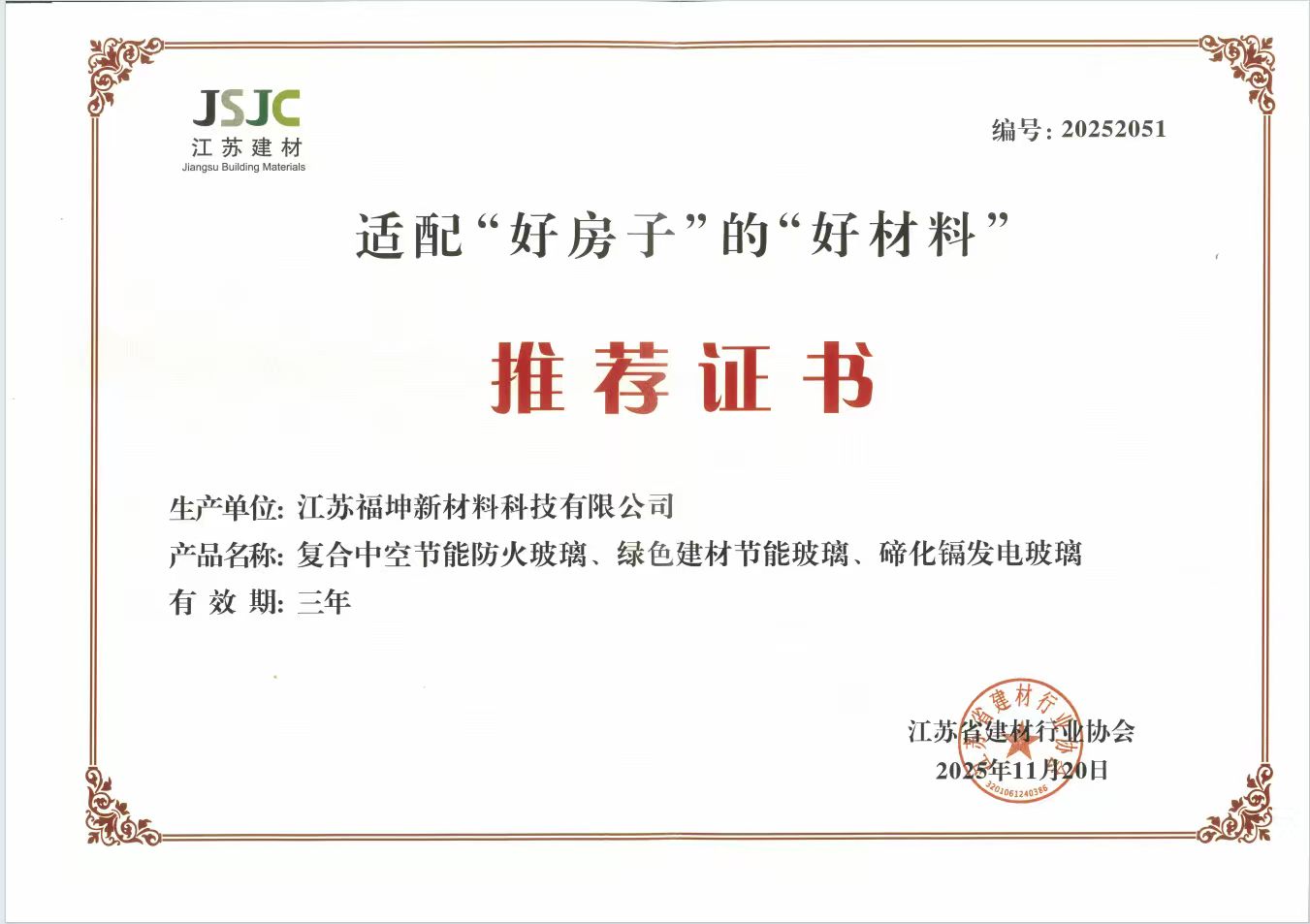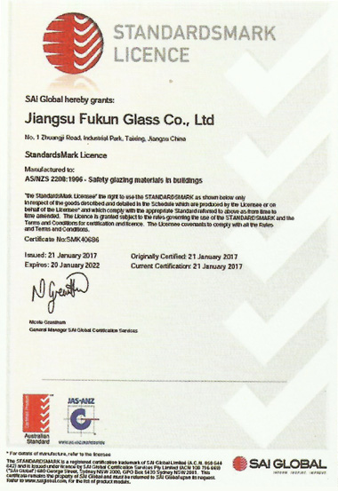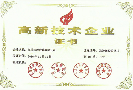 江蘇福坤新材料科技有限公司始創于2007年,總部設在江蘇省泰興市城區工業園莊基路1號,是蘇中地區玻璃深加工行業最具競爭力的企業之一。 近年來公司產品通過了CQC中國質量認證中心3C認證、ISO9001:2008質量體系認證、美國SGCC安全認證、澳洲STA標準認證、綠色工廠認證等。目前公司有18項技術和產品獲得了國家專利,有3種產品獲得了國家節能產品認證。…